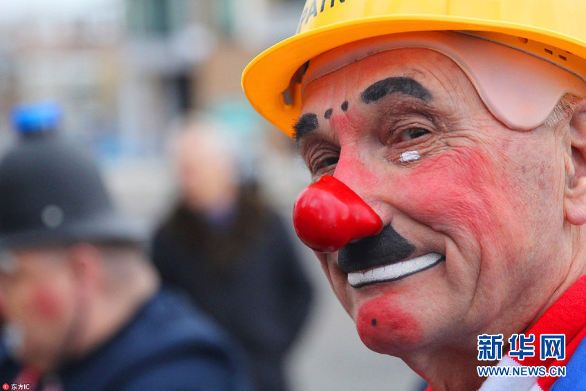 英國倫敦小丑歡聚一堂 紀念“小丑之父”