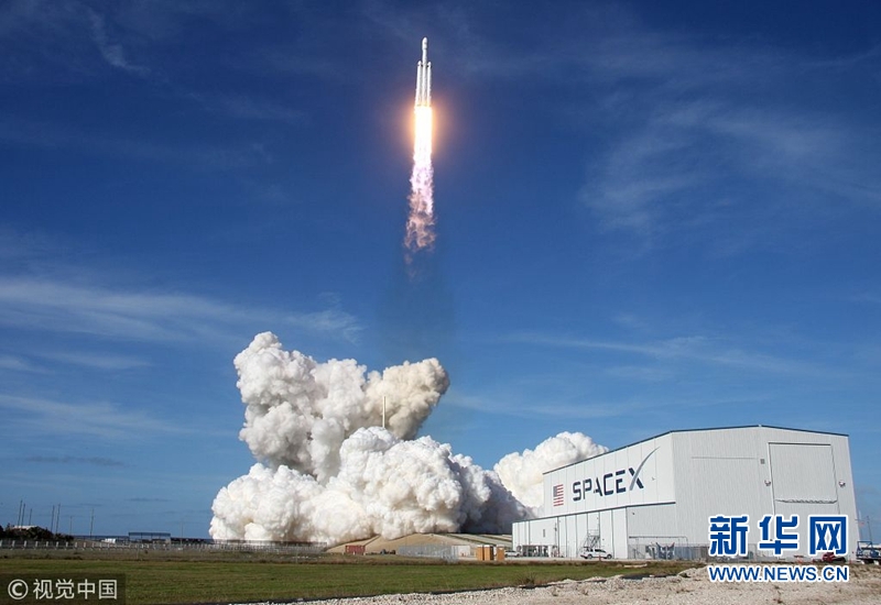 當?shù)貢r間2018年2月6日,美國佛州卡納維拉爾角,美國重型運載火箭“獵鷹重型”6日攜帶一輛特斯拉跑車發(fā)射升空。(圖片來源:視覺中國)