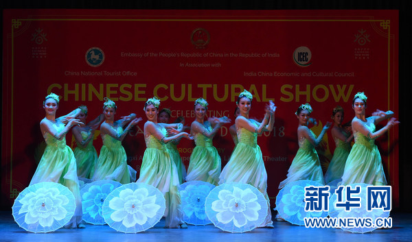 2月9日,在印度首都新德里,2018“歡樂春節(jié)”活動(dòng)演出現(xiàn)場(chǎng),中國(guó)演員在表演舞蹈。新華網(wǎng)發(fā)(張迺杰攝)