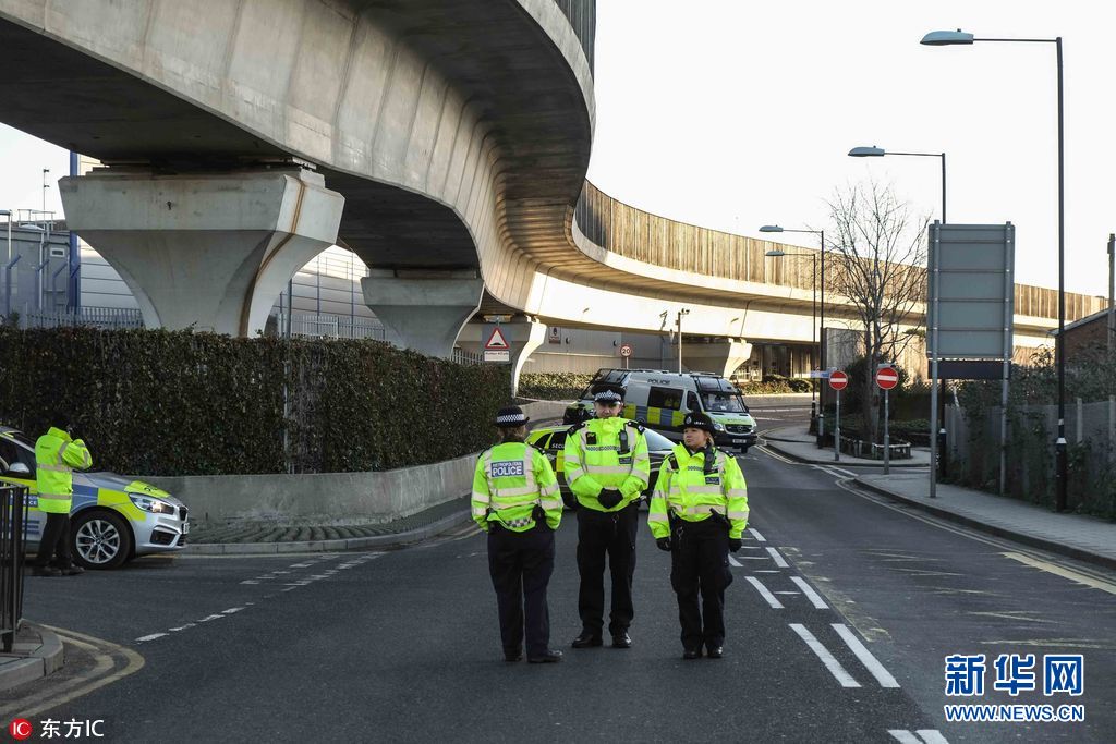 當地時間2018年2月12日,英國倫敦,倫敦城市機場附近泰晤士河道內發現一枚二戰遺留炸彈,警方封鎖現場。機場被迫關閉,航班取消。(圖片來源:東方IC)