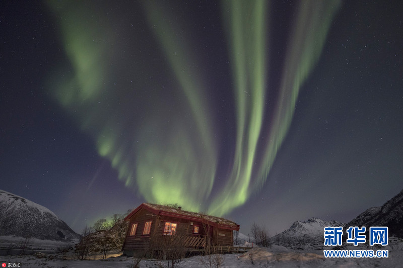 2月19日,英國攝影師拍攝下一組絕美的北極光照片。Paul Goldstein是一位來自英國溫布爾頓的導游,他領著18名“極光獵人”組成的團隊在北極圈內捕捉北極光,然后在挪威冰封的峽灣地區拍攝下這些令人驚嘆照片。畫面中,美麗的北極光如一條條綠色的條紋帶在夜空舞動,美得令人窒息。(圖片來源:東方IC)