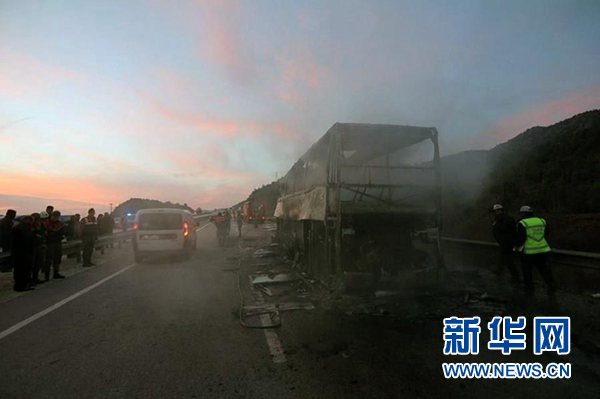 電視臺現場畫面顯示,大巴車嚴重損毀,只剩焦黑的車架。一位幸存乘客說,事發時車上乘客大多在睡夢中。有乘客打碎車窗逃生,未能逃出的乘客則大多遭遇不幸。