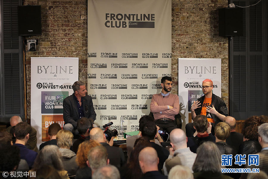 當地時間2018年3月26日,英國倫敦,被指泄露并利用了5000萬臉書用戶數據的政治數據公司“劍橋分析”近日被多位爆料人指出,該公司也參與了支持英國脫歐的活動。一位為英國脫歐組織“投給脫歐”工作過的爆料人Shahmir Sanni和“劍橋分析”前員工Christopher Wylie出席活動。(圖片來源:視覺中國)