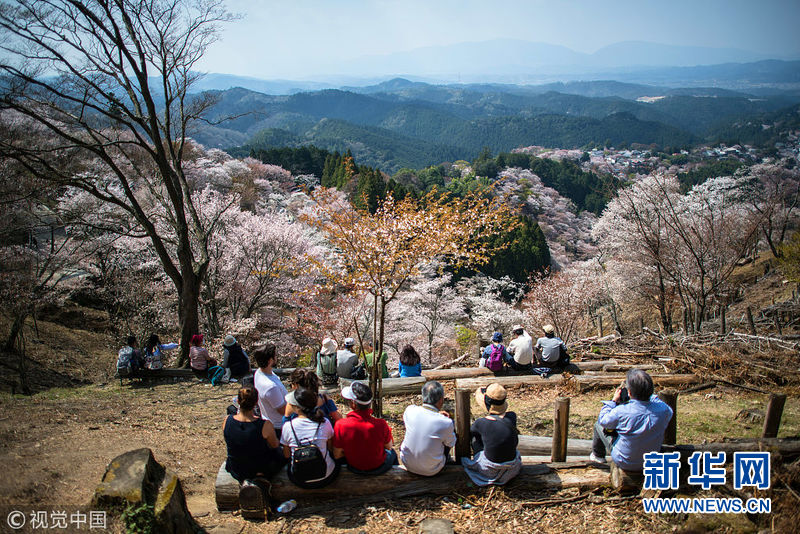 4月3日,日本奈良吉野,當地櫻花盛放,吸引眾多游客前來觀賞。(圖片來源:視覺中國)