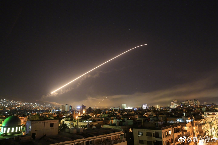 新華社記者在大馬士革城區看到,閃著紅光的飛彈不時射向天空,遠處煙霧升騰。敘利亞軍方在首都周邊多地部署了防空力量,第一時間對襲擊給予回應。