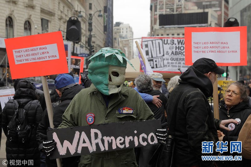 美國民眾舉行反戰游行 抗議美英法聯軍襲擊敘利亞