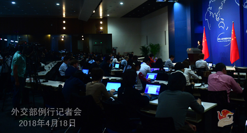 2018年4月18日外交部發言人華春瑩主持例行記者會
