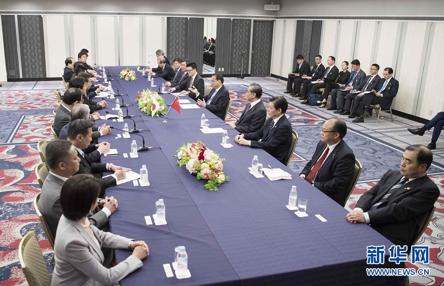 當地時間5月10日下午,國務院總理李克強在東京下榻飯店會見日本在野黨負責人。新華社記者 李濤 攝
