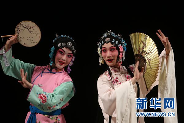 ?。对拢啡?,在白俄羅斯東部城市莫吉廖夫,兩位中國戲曲演員在表演昆曲《牡丹亭》。新華網發 魏忠杰 攝