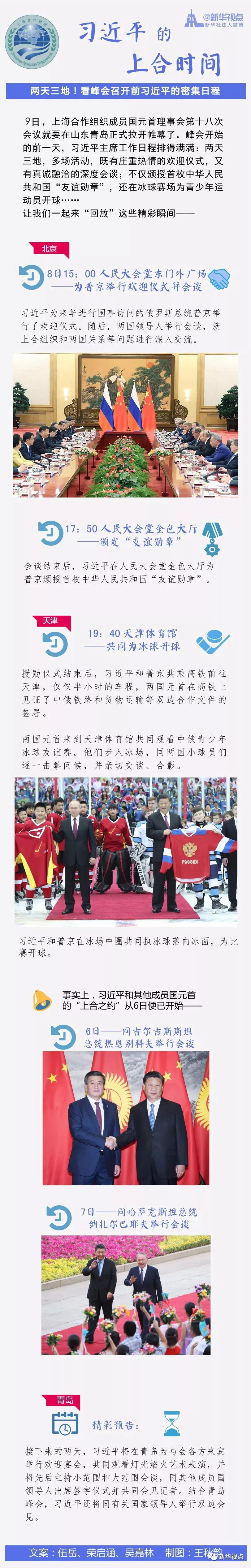 9日,上海合作組織成員國元首理事會第十八次會議就要在山東青島正式拉開帷幕了。峰會開始的前一天,習近平主席工作日程排得滿滿:兩天三地,多場活動,既有莊重熱情的歡迎儀式,又有真誠融洽的深度會談;不僅頒授首枚中華人民共和國“友誼勛章”,還在冰球賽場為青少年運動員開球……讓我們一起來“回放”這些精彩瞬間????