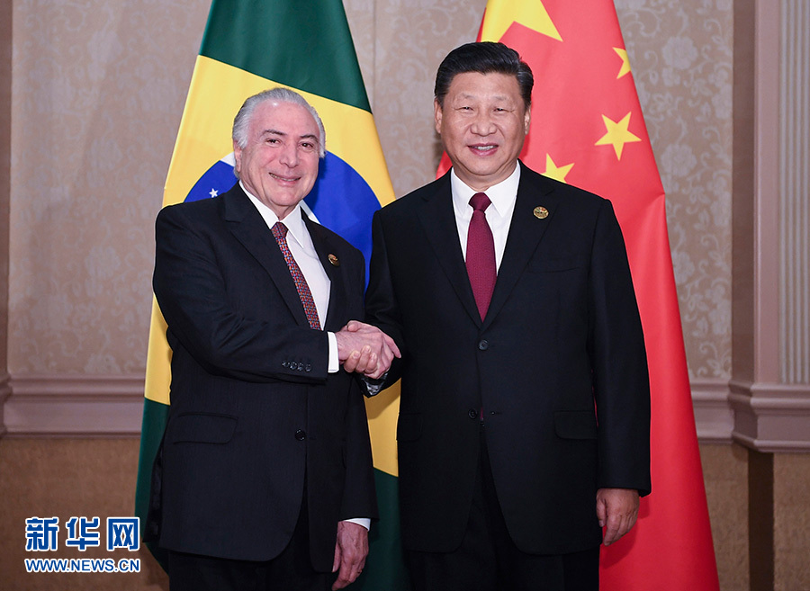7月26日,國家主席習近平在南非約翰內斯堡會見巴西總統特梅爾。 新華社記者 王曄 攝