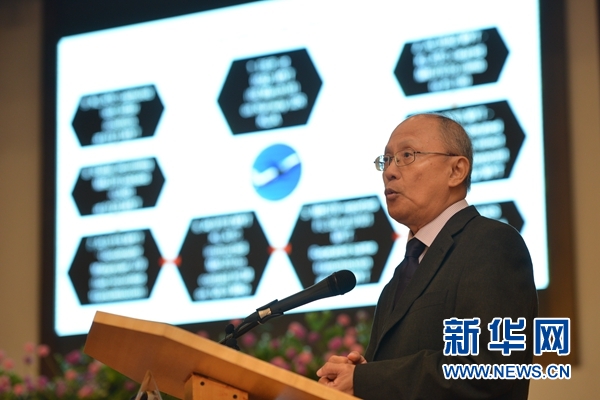 7月30日,馬航370航班客機安全調查組負責人郭師傳在馬來西亞普特拉賈亞舉行的新聞發布會上講話。新華社發(張紋綜攝)