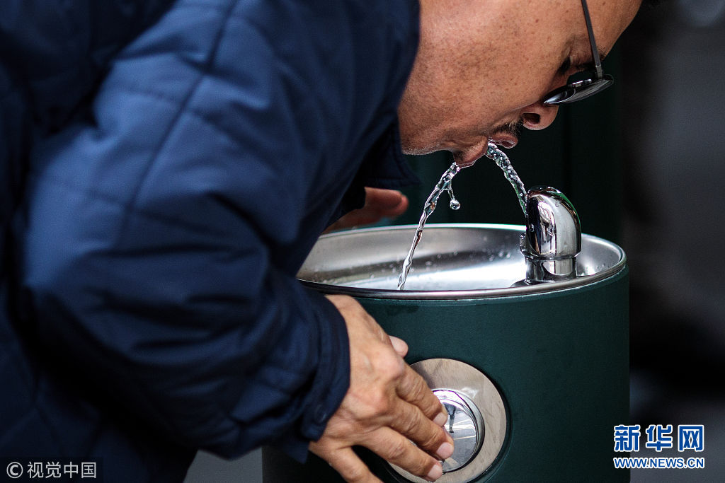 當(dāng)?shù)貢r(shí)間2018年8月28日,英國倫敦,民眾在公共飲水機(jī)旁飲水。倫敦市長近日引進(jìn)了20個(gè)新的公共飲水機(jī),鼓勵(lì)人們自帶杯子取水喝,從而減少塑料垃圾。 (圖片來源:視覺中國)
