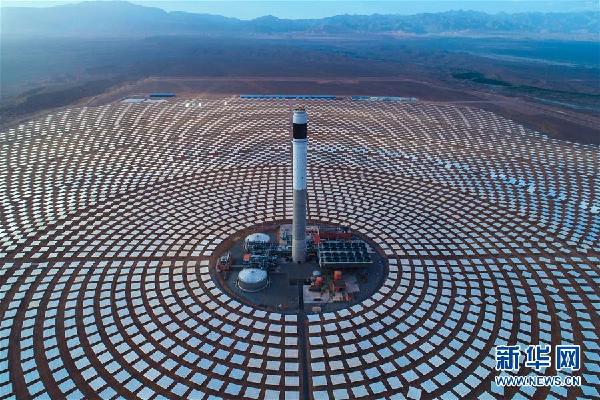 這是2018年6月7日在摩洛哥瓦爾扎扎特拍攝的努奧光熱電站項(xiàng)目三期工程(航拍照片)。從2015年起,中國電建集團(tuán)下屬的山東電建三公司在瓦爾扎扎特承建努奧光熱電站項(xiàng)目二期和三期工程。努奧光熱電站項(xiàng)目是目前全球規(guī)模最大的光熱電站項(xiàng)目。二期工程槽式光熱電站現(xiàn)已進(jìn)入商業(yè)運(yùn)行,三期塔式光熱電站也于近日順利實(shí)現(xiàn)首次并網(wǎng)目標(biāo)。待項(xiàng)目完全建成后,努奧光熱電站將為超過100萬的摩洛哥家庭提供清潔能源,還可以把富余的電能出口到歐洲。 新華社發(fā)/山東電建三公司供圖