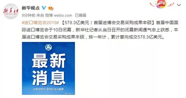 首屆中國國際進口博覽會于10日閉幕,新華社記者從當日召開的閉幕新聞通氣會上獲悉,本屆進口博覽會交易采購成果豐碩,按一年計,累計成交578億美元。