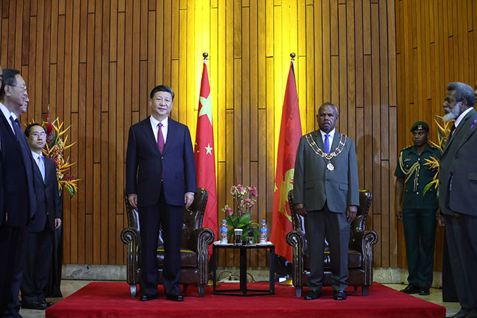 11月16日,國(guó)家主席習(xí)近平在莫爾茲比港會(huì)見(jiàn)巴布亞新幾內(nèi)亞總督達(dá)達(dá)埃。新華社記者 鞠鵬 攝