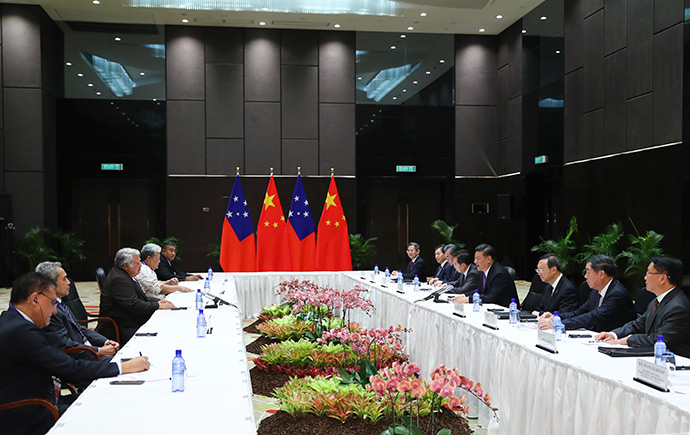 11月16日,國(guó)家主席習(xí)近平在莫爾茲比港分別會(huì)見(jiàn)建交太平洋島國(guó)領(lǐng)導(dǎo)人。這是習(xí)近平會(huì)見(jiàn)薩摩亞總理圖伊拉埃帕。新華社記者 謝環(huán)馳 攝