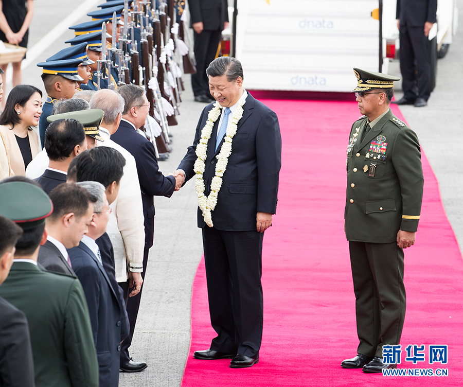11月20日,國家主席習近平抵達馬尼拉,開始對菲律賓共和國進行國事訪問。這是習近平在機場受到菲律賓政府高級官員熱情迎接。 新華社記者 黃敬文 攝