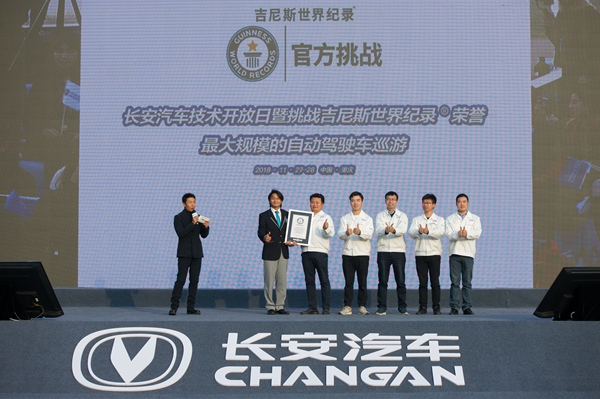 據(jù)吉尼斯世界紀(jì)錄官方報(bào)道,長(zhǎng)久以來(lái)吉尼斯世界紀(jì)錄以公平性、尊重和包容性獲得了來(lái)自世界各個(gè)國(guó)家及地區(qū)的廣泛認(rèn)可。這一次應(yīng)長(zhǎng)安汽車品牌申請(qǐng),吉尼斯世界紀(jì)錄于2018年11月28日在中國(guó)重慶墊江試驗(yàn)場(chǎng)為其進(jìn)行“最大規(guī)模的自動(dòng)駕駛車巡游”的官方挑戰(zhàn)。最終,憑借其國(guó)際領(lǐng)先而極具穩(wěn)定性的自動(dòng)駕駛技術(shù),55輛長(zhǎng)安汽車組成的自動(dòng)駕駛車隊(duì)勻速行進(jìn)3.2公里,成功創(chuàng)造世界紀(jì)錄稱號(hào),成為全球首個(gè)成功創(chuàng)造該紀(jì)錄稱號(hào)的汽車品牌。