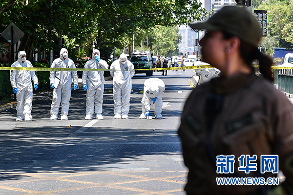 1月4日,在智利首都圣地亞哥,特警在爆炸襲擊現場調查。新華社發(豪爾赫·比列加斯攝)