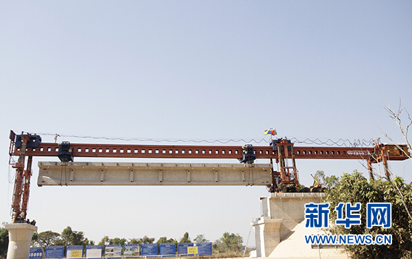 這是2月9日在老撾首都萬象拍攝的楠科內(nèi)河特大橋架梁施工現(xiàn)場(chǎng)。新華社發(fā)(臧衡 攝)