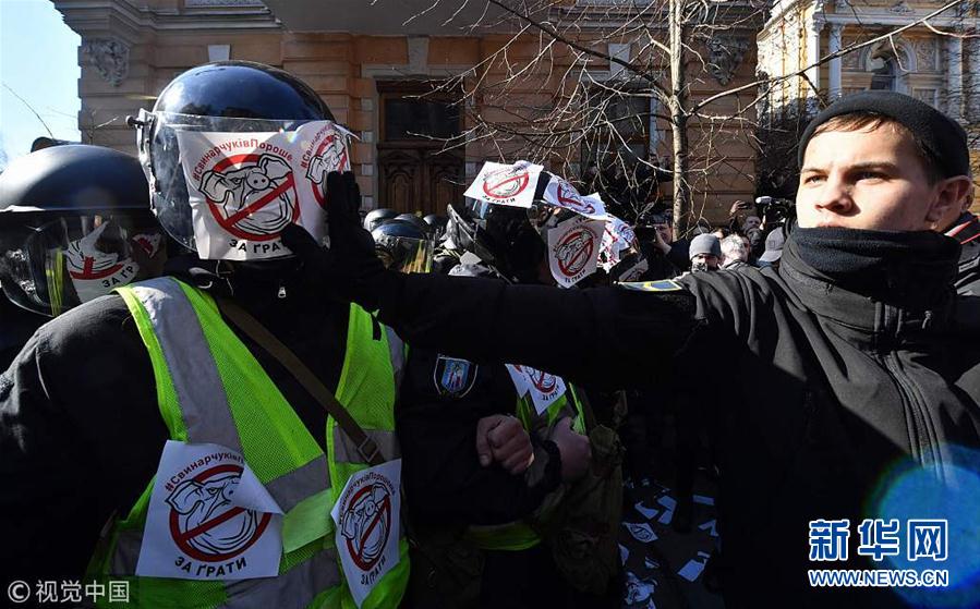 當(dāng)?shù)貢r(shí)間2019年3月9日,烏克蘭基輔,烏克蘭民族主義政黨的激進(jìn)分子集會要求調(diào)查烏克蘭武裝部隊(duì)官員的腐敗問題,與警方發(fā)生激烈沖突。(圖片來源:視覺中國)