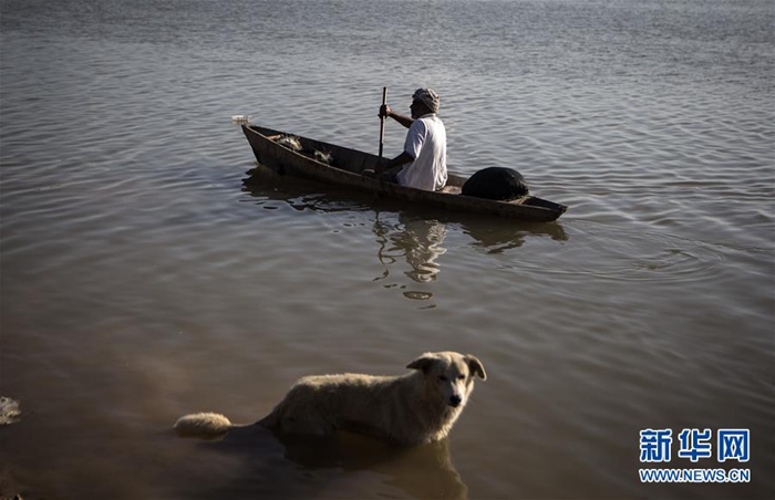 4月10日,在伊朗胡齊斯坦省,居民劃船出行。近期,伊朗境內持續洪澇災害。新華社發(艾哈邁德·哈拉比薩斯 攝)