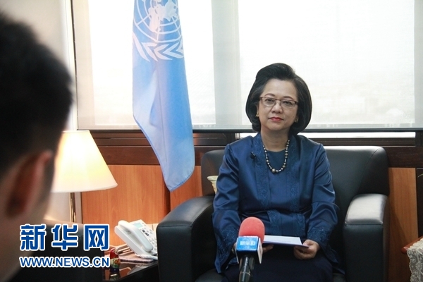 5月14日,聯(lián)合國(guó)亞洲及太平洋經(jīng)濟(jì)社會(huì)委員會(huì)執(zhí)行秘書(shū)阿米達(dá)·阿利斯夏巴納在泰國(guó)曼谷接受新華社記者采訪。 聯(lián)合國(guó)亞洲及太平洋經(jīng)濟(jì)社會(huì)委員會(huì)執(zhí)行秘書(shū)阿米達(dá)·阿利斯夏巴納日前在曼谷接受新華社記者采訪時(shí)說(shuō),70年來(lái)中國(guó)取得了全方位的發(fā)展成就,并給亞太地區(qū)帶來(lái)積極影響。 新華社發(fā)
