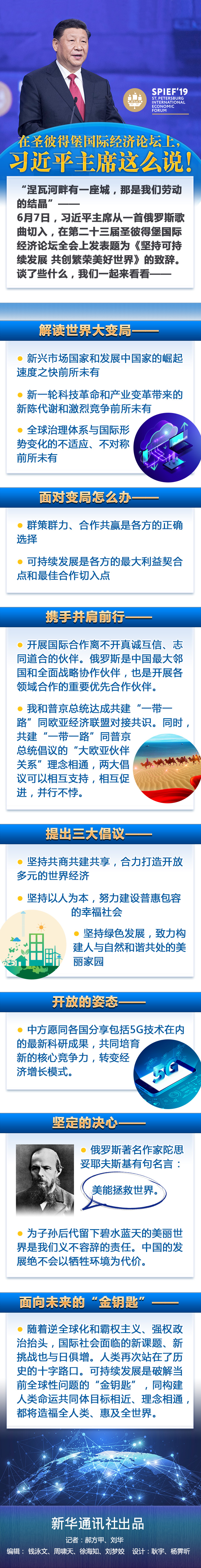 6月7日,習近平主席從一首俄羅斯歌曲切入,在第二十三屆圣彼得堡國際經濟論壇全會上發表題為《堅持可持續發展 共創繁榮美好世界》的致辭。