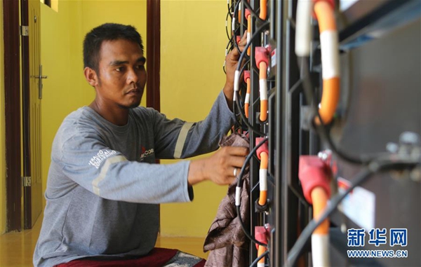 國網駐菲律賓辦事處副主任劉明告訴記者,這一項目采取太陽能微電網集中供電,鋪設在村中兩個地勢平坦處的200多塊太陽能電池板共占地1000余平方米,發電容量76千瓦,電池儲能容量390千瓦時。“電站正式投入使用后,基本可以滿足村里1000多名居民、包括兩所學校108名學生的日常需求。”他說。