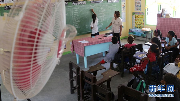 菲律賓中小學6月開始新學年。坐在明亮涼爽的教室中,巴利瓦特小學的孩子們十分興奮。“現在有了電燈、電風扇,孩子們終于不用渾身濕漉漉地趴在書桌上費力讀書了。”教師埃拉妮·卡瓦加斯說。