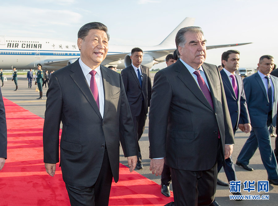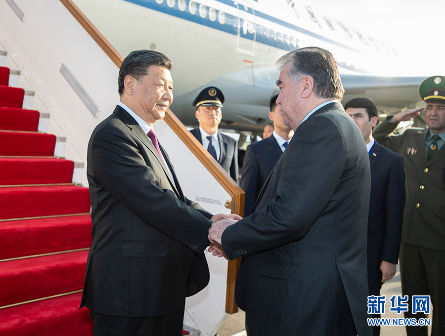 習近平抵達杜尚別開始出席亞洲相互協作與信任措施會議第五次峰會并對塔吉克斯坦共和國進行國事訪問