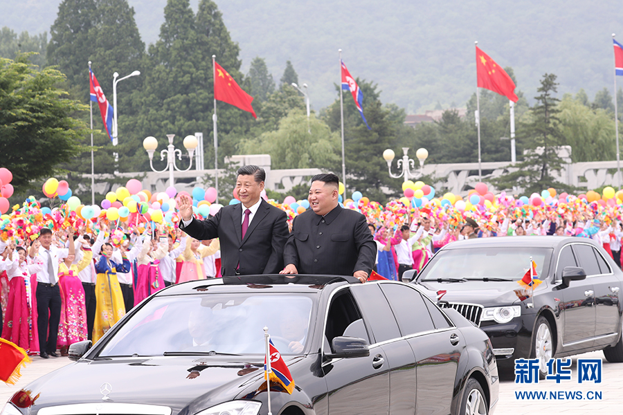 6月20日,中共中央總書記、國(guó)家主席習(xí)近平乘專機(jī)抵達(dá)平壤,開始對(duì)朝鮮民主主義人民共和國(guó)進(jìn)行國(guó)事訪問。朝鮮勞動(dòng)黨委員長(zhǎng)、國(guó)務(wù)委員會(huì)委員長(zhǎng)金正恩和夫人李雪主到機(jī)場(chǎng)熱情迎接習(xí)近平和夫人彭麗媛。朝方在機(jī)場(chǎng)舉行隆重歡迎儀式。歡迎儀式結(jié)束后,習(xí)近平與金正恩同車前往錦繡山太陽宮廣場(chǎng),沿途數(shù)十萬群眾夾道歡迎。 新華社記者 申宏 攝