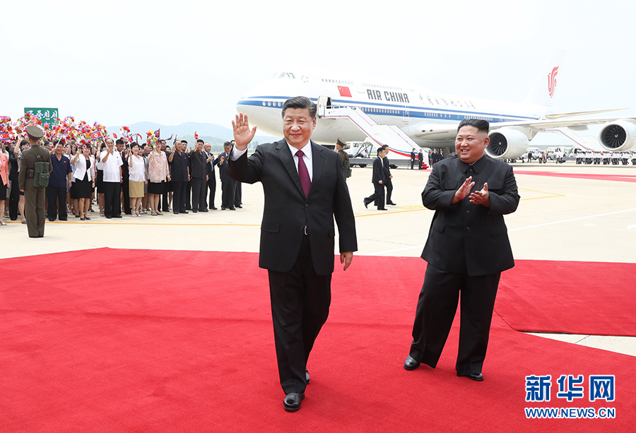 6月20日,中共中央總書記、國(guó)家主席習(xí)近平乘專機(jī)抵達(dá)平壤,開始對(duì)朝鮮民主主義人民共和國(guó)進(jìn)行國(guó)事訪問。朝鮮勞動(dòng)黨委員長(zhǎng)、國(guó)務(wù)委員會(huì)委員長(zhǎng)金正恩和夫人李雪主到機(jī)場(chǎng)熱情迎接習(xí)近平和夫人彭麗媛。朝方在機(jī)場(chǎng)舉行隆重歡迎儀式。 新華社記者 鞠鵬 攝