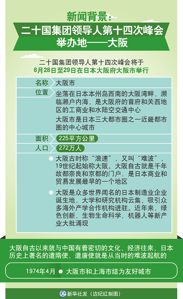 新聞背景:二十國集團(tuán)領(lǐng)導(dǎo)人第十四次峰會舉辦地——大阪