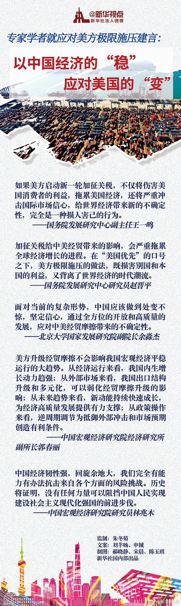新華社北京8月7日電 題:以中國經(jīng)濟的“穩(wěn)”應(yīng)對美國的“變”——專家學(xué)者就應(yīng)對美方極限施壓建言