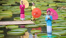 穿針、引線、穿珠、起針、收針……繡娘們熟稔地運用著手中銀色的細針。48歲的韋靜明把銀色亮片沿紋路一顆顆地縫到一片繡品上。一旁,她兒媳的手在絲線中翻飛,她要用20多種顏色的線,繡三朵立體的牡丹花。