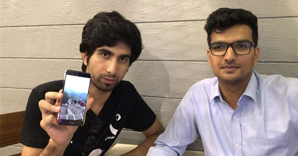 帕爾特·達爾(左)和達克什·卡迪安展示他們?nèi)ブ袊恼掌P氯A社記者趙旭攝