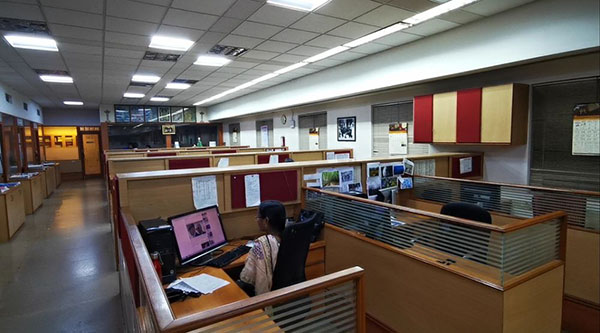 文卡特斯瓦倫負責《印度教徒報》的頭條版樣設(shè)計。他的辦公室門口,整整齊齊地碼放著其他報紙的刊樣。