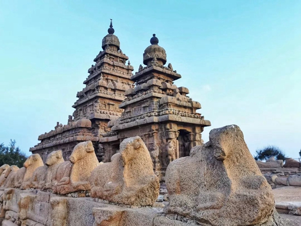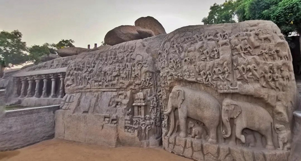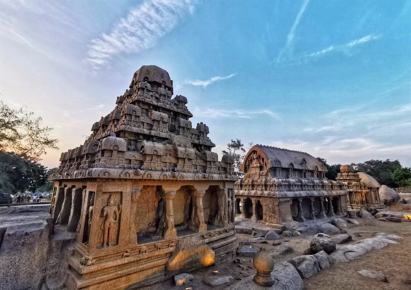 馬哈巴利普拉姆古寺廟建于公元7至8世紀,由阿周那石雕、五戰車神廟、海岸神廟等古跡組成。