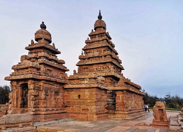 海岸神廟于公元700年至728年間建造,為南印度現存最古老的巖石結構神廟之一。塔型建筑主要用于宗教祭祀。據傳,海岸最初有七座神廟,但因海岸線變化和海水侵蝕,最終只剩下一座,故此地又名“七塔寺”。新華社記者王曄攝