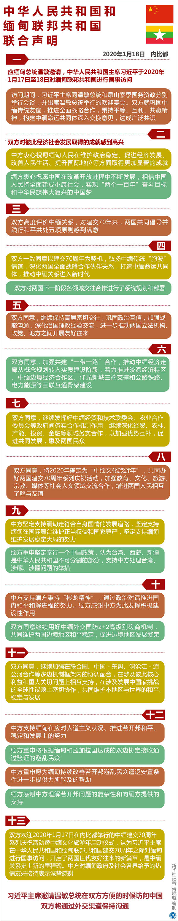 新華社內(nèi)比都1月18日電 中華人民共和國(guó)和緬甸聯(lián)邦共和國(guó)聯(lián)合聲明全文如下: