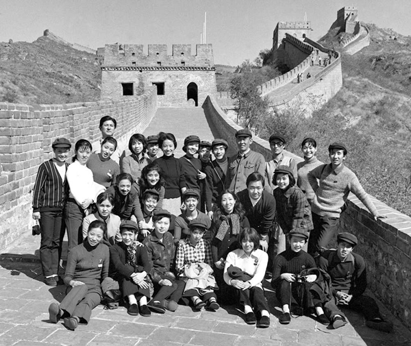 1971年10月18日,日本松山芭蕾舞團部分成員在北京游覽長城。新華社記者郭占英攝