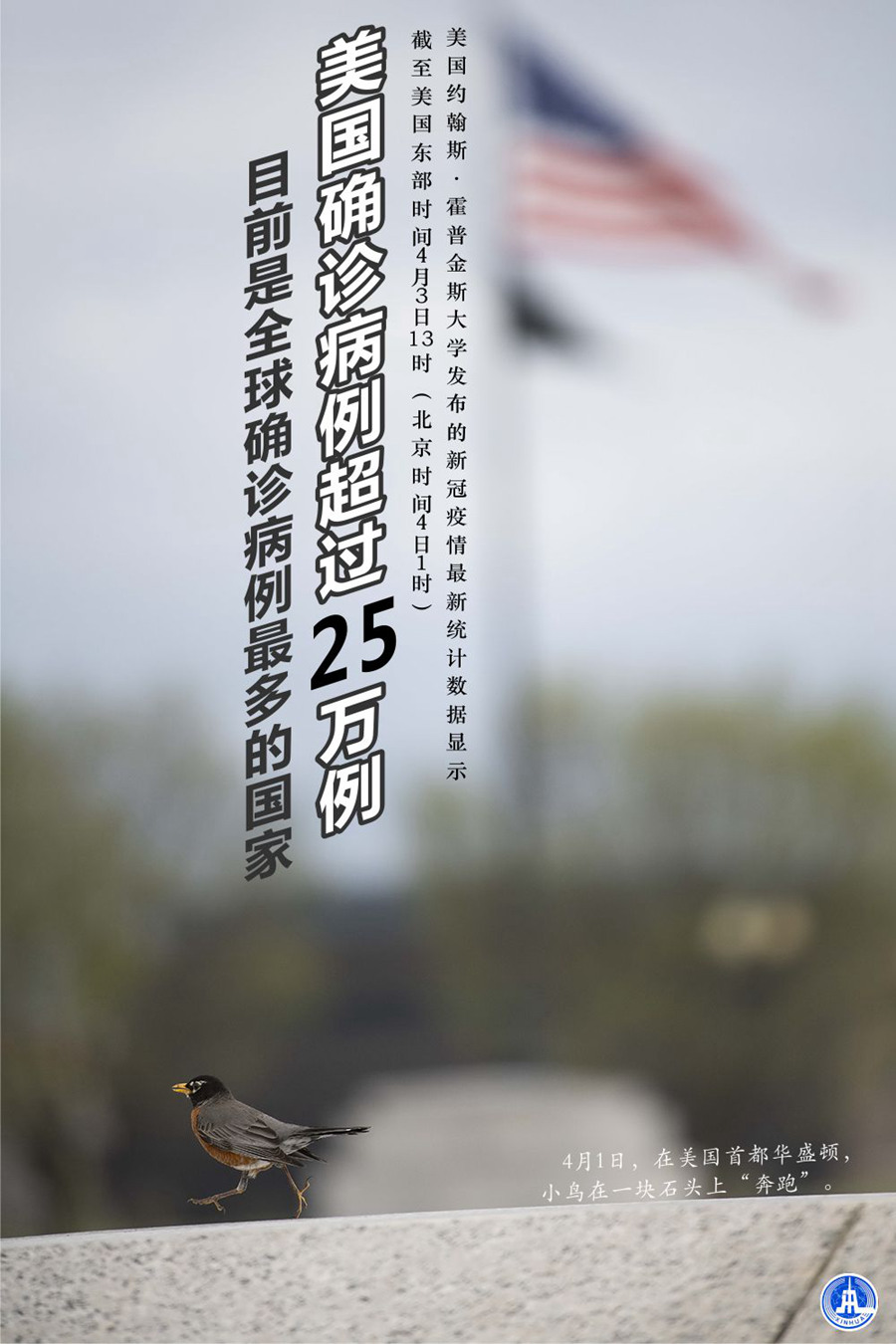 新華社紐約4月3日電 美國約翰斯·霍普金斯大學3日發布的新冠疫情最新統計數據顯示,美國確診病例超過25萬例。美國目前是全球確診病例最多的國家。