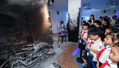 巡堤歸來 小朋友站路邊給消防員敬禮
