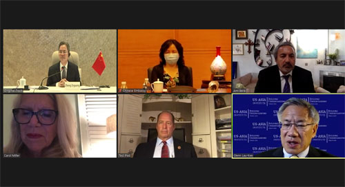 這次視頻對話由中國人民外交學會和美國美亞學會合作舉辦。上述兩機構負責人等出席了對話。