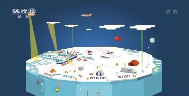 科考隊還花了18天時間,在浮冰上搭建起一座研究基地。科考所用的設備都被布放在不同的分區,在“水下機器人”中心,利用遠程操作工具,就可以收集海冰之下的觀測數據,并將這些數據傳回“極星”號;在海洋中心,科考隊員在冰層上鉆孔,把觀測設備降至海冰之下,采集海水樣本;在海冰研究中心,科考隊員們可以研究和觀察海冰和冰上的雪覆蓋。而在大氣中心,科學家們可以收集研究大氣和空氣成分。