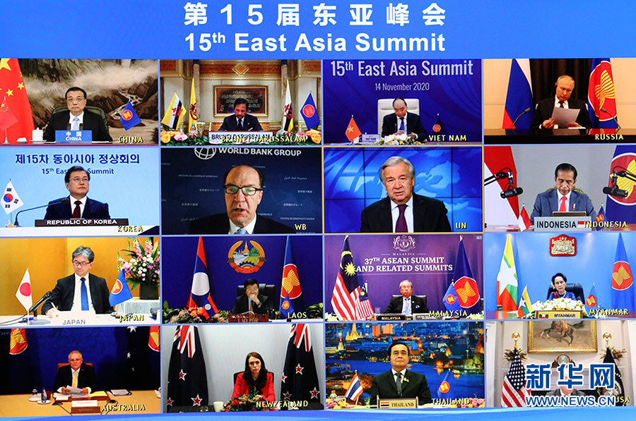 11月14日晚,國務院總理李克強在北京人民大會堂出席第15屆東亞峰會。會議以視頻形式舉行。 新華社記者 劉衛兵 攝