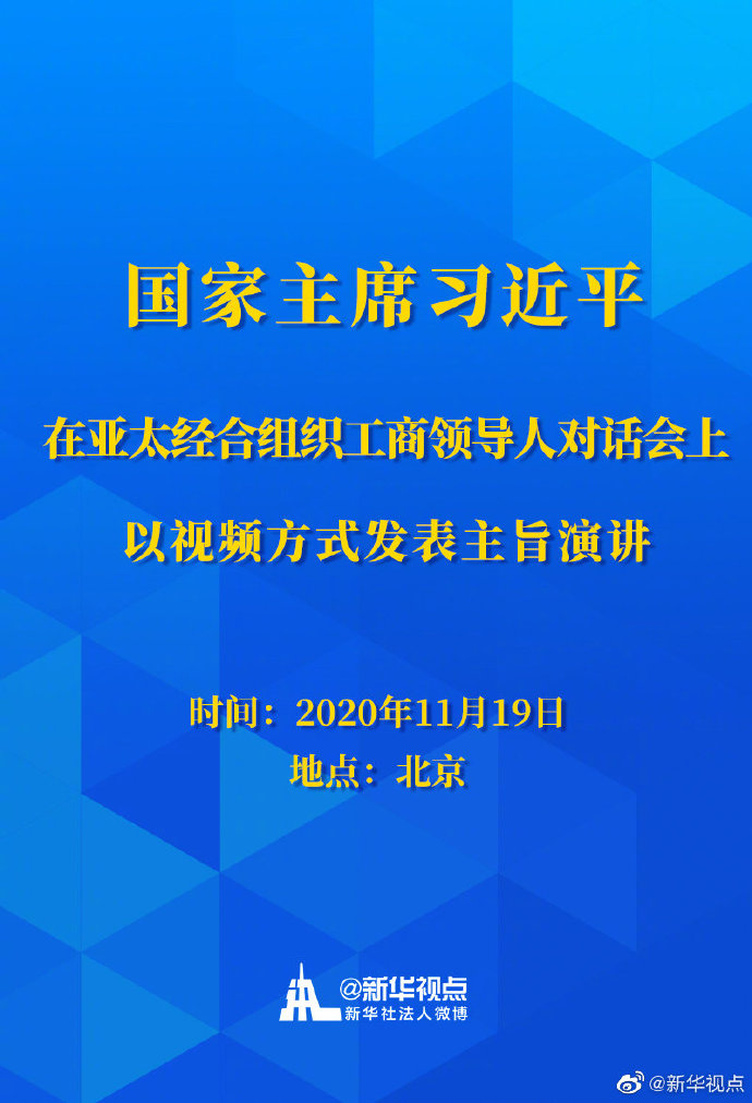 國家主席習近平11月19日在北京以視頻方式在亞太經合組織工商領導人對話會上發表主旨演講。