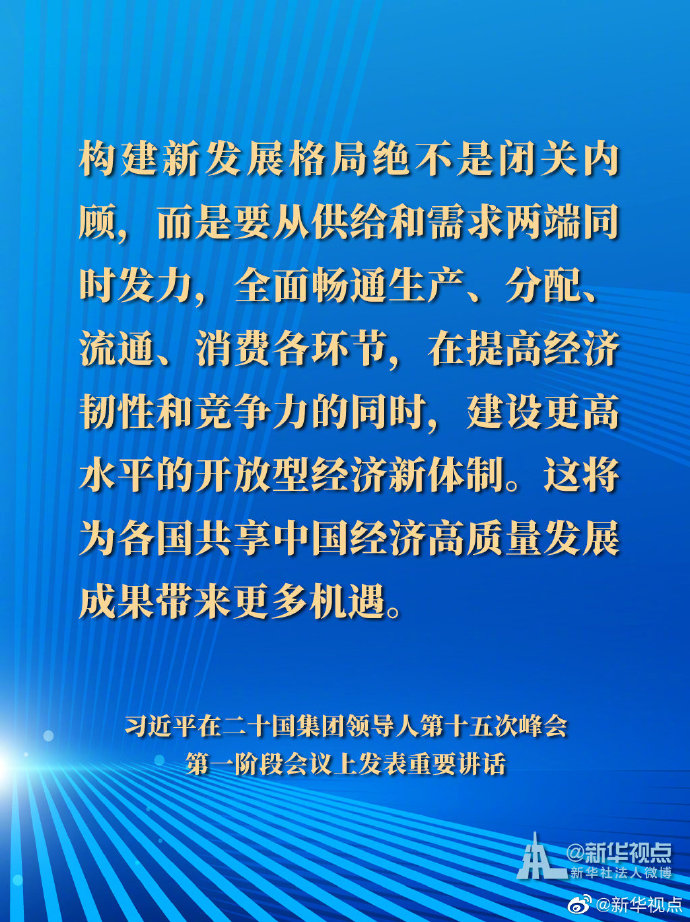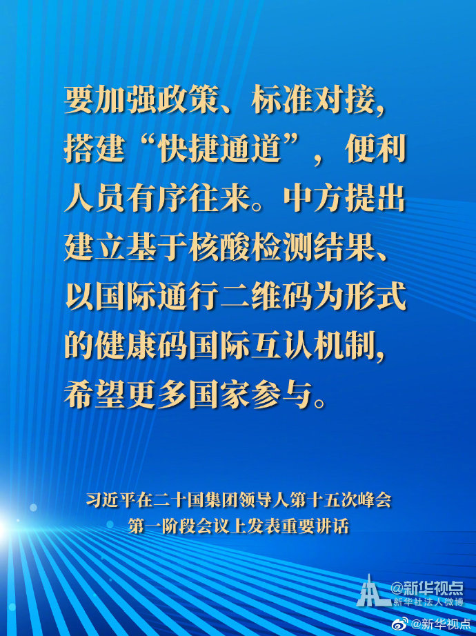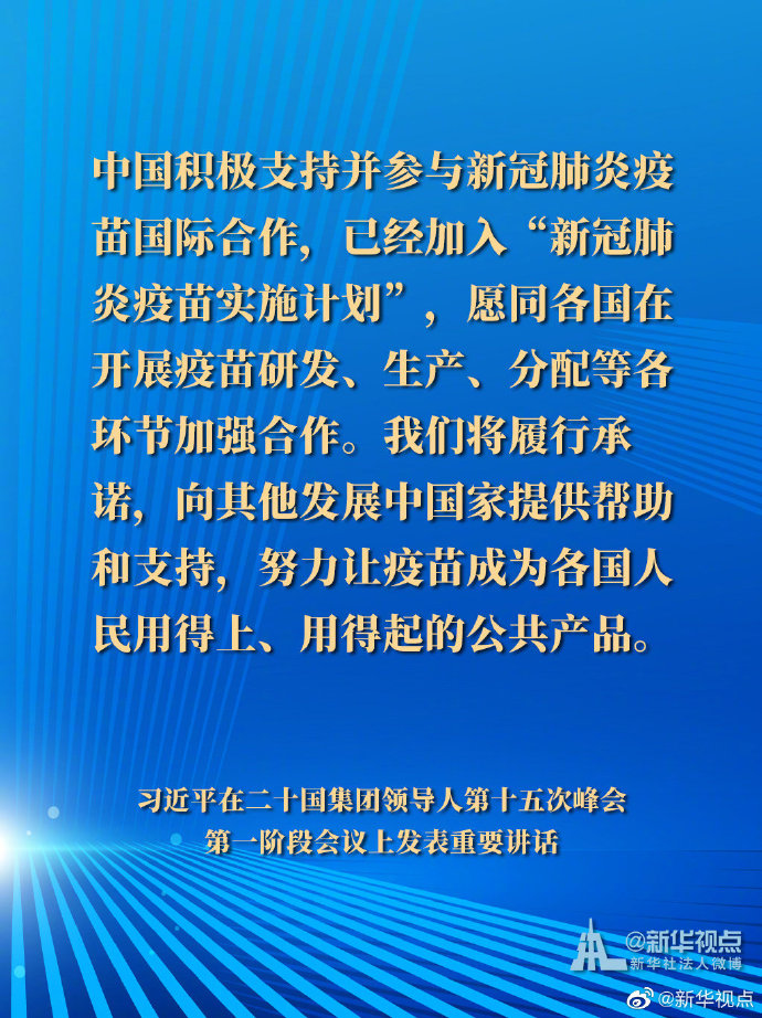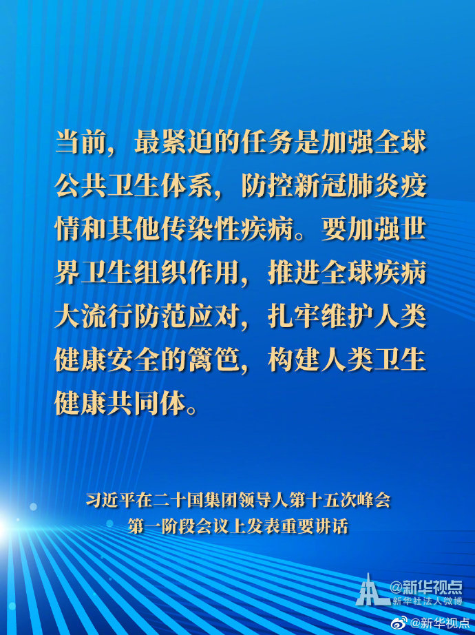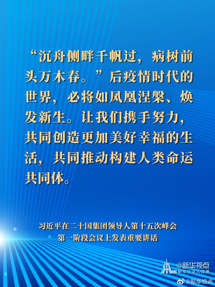國家主席習近平21日晚在北京以視頻方式出席二十國集團領導人第十五次峰會第一階段會議并發表重要講話。以下是講話要點。